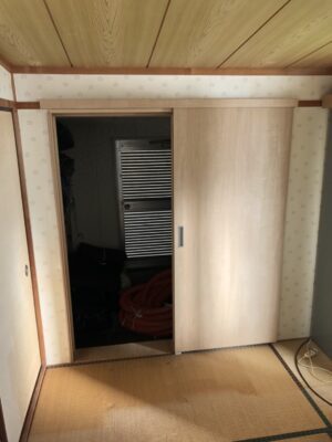 2022年1月19日 BLOG, お知らせ/ブログ, リフォーム 戸の無い所に戸❗️ 隣の部屋への直通のドアが無かったため、とても不便だったようです😅 こんな時は、“エイッ”とアウトセットドアを付けます。 簡単に取り付ける事が出来ます😊👍 0